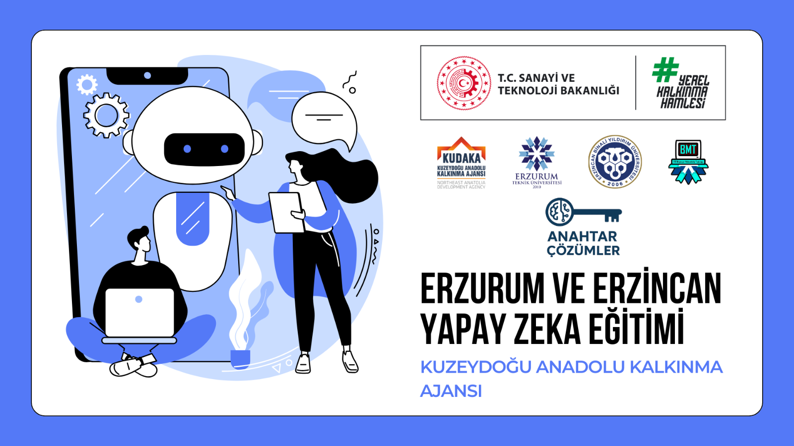 T.C. Sanayi ve Teknoloji Bakanlığı’nın "Yerel Kalkınma Hamlesi" kapsamında, KUDAKA tarafından yürütülen “Anahtar Çözümler” programı ile Erzurum ve Erzincan'da teknolojiyle ilgilenen gençler için ücretsiz yapay zekâ eğitimi düzenleniyor.