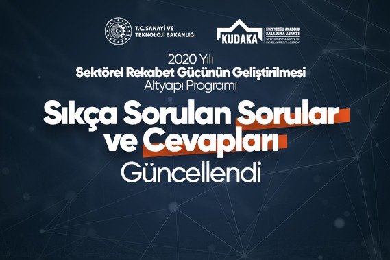 Kuzeydoğu Anadolu Kalkınma Ajansı (KUDAKA) 2020 yılı Sektörel Rekabet Gücünün Geliştirilmesi Altyapı Programı kapsamında “Sıkça Sorulan Sorular” güncellendi. İlgili soru ve cevaplara https://kudaka.ka.gov.tr/hizli-menu/sikca-sorulan-sorular bağlantısından ulaşabilirsiniz.