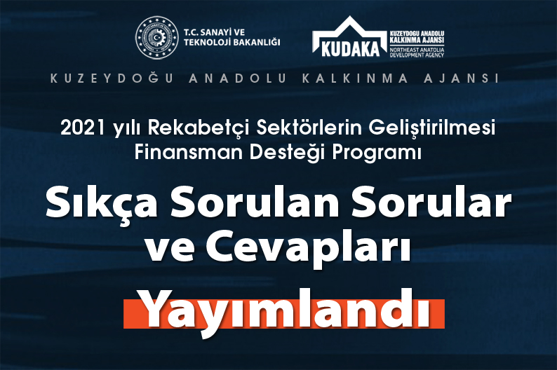 Kuzeydoğu Anadolu Kalkınma Ajansı (KUDAKA) 2021 yılı Rekabetçi Sektörlerin Geliştirilmesi Finansman Desteği Programı “Sıkça Sorulan Sorular ve Cevapları” yayımlandı.