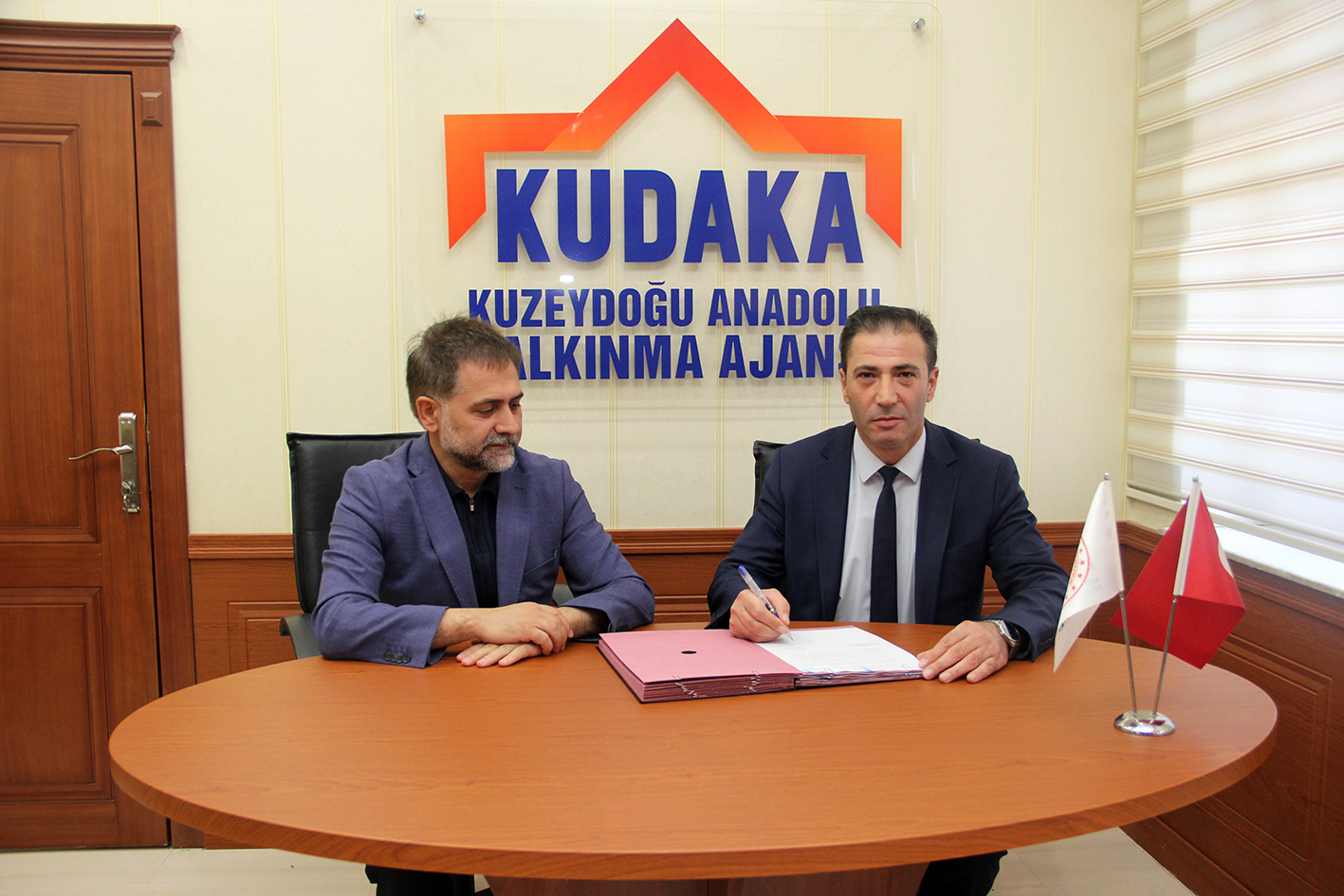Kuzeydoğu Anadolu Kalkınma Ajansı hizmet binasında düzenlenen imza törenine KUDAKA Genel Sekreteri Oktay Güven ve Yakutiye Belediye Başkanı Dr. Mahmut Uçar katıldı.